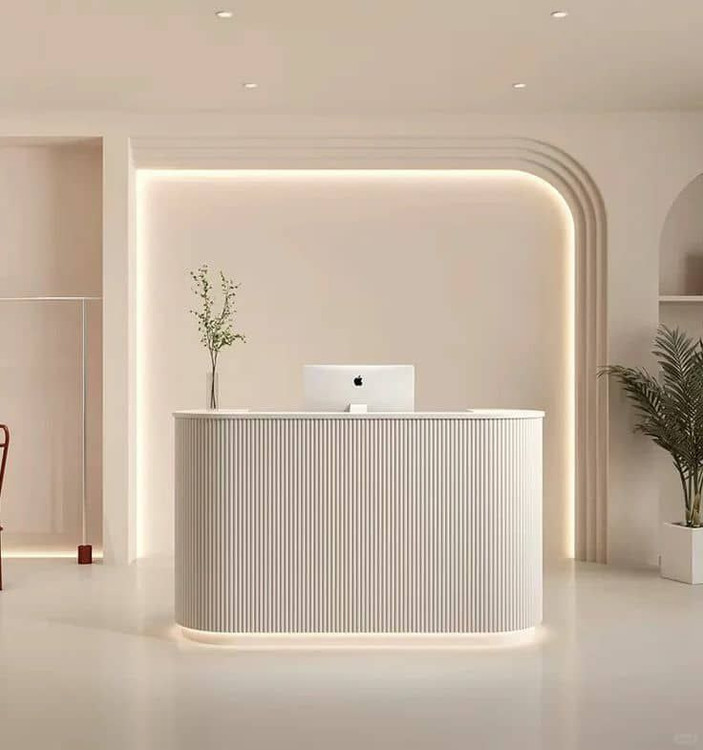 کانتر پذیرش MDF مدرن با طراحی منحنی و سبک مینیمال، گزینهای ایدهآل برای فضاهای لوکس، کلینیکها، دفاتر اداری و سالنهای زیبایی است.
