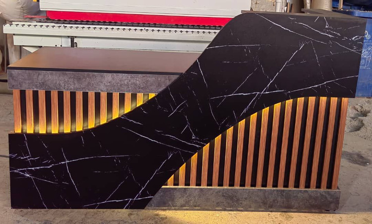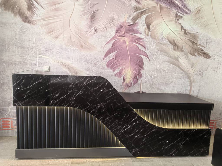 کانتر پذیرش طرح سنگ مشکی مدل موجی، یکی از شیکترین و چشمگیرترین مدلهای مدرن برای لابی، دفاتر اداری، سالنهای زیبایی، مطبها و فضاهای لاکچری است.